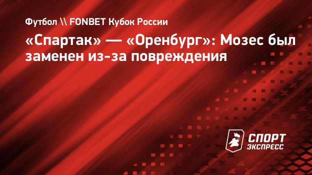 Полузащитник «Спартака» Виктор Мозес в ответном матче 1/4 финала Пути РПЛ FONBET Кубка России против «Оренбурга» покинул поле из-за травмы.
