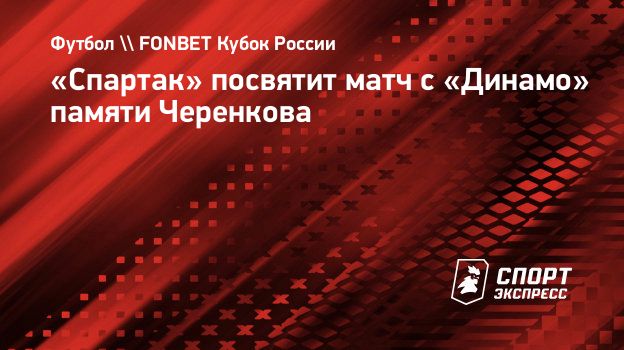 Матч 1-го тура FONBET Кубка России между «Спартаком» и «Динамо» будет посвящен памяти футболиста Федора Черенкова, сообщает официальный сайт красно-белых.