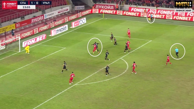 «Спартак» — «Урал»: Карасев не назначил пенальти, ВАР его ошибку не исправил. Кто-то понимает логику действий арбитров?