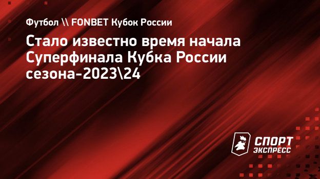 Суперфинал FONBET Кубка России сезона-2023/24, который состоится 2 июня на стадионе «Лужники» в Москве, начнется в 18.00 по московскому времени. Об этом сообщает пресс-служба турнира в своем Telegram-канале.