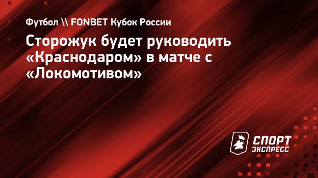 Сторожук будет руководить «Краснодаром» в матче с «Локомотивом»