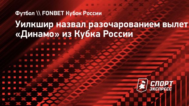 Уилкшир назвал разочарованием вылет «Динамо» из Кубка России