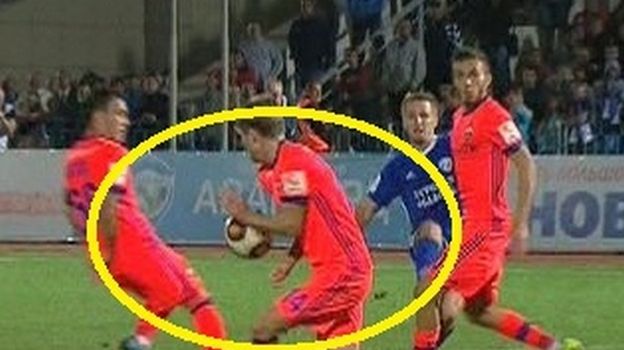 На 113-й минуте матча 1/16 финала Кубка России "Авангард" – ЦСКА (1:0 д.в.) правильное решение принял арбитр Сергей Куликов, наказавший гостей пенальти. На видеоповторе ясно видно, что защитник Кирилл Набабкин парировал удар соперника левой рукой, отставленной в сторону. По правилам игры, такое нарушение, совершенное в своей штрафной площади, карается назначением 11-метрового удара. (Александр БОБРОВ)