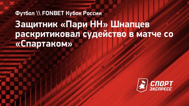 Защитник «Пари НН» Максим Шнапцев раскритиковал судейство в эпизоде с отменой гола нижегородцев и назначением пенальти в их ворота в матче со «Спартаком» (1:2) в 5-м туре группового турнира пути РПЛ FONBET Кубка России.