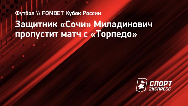 Защитник «Сочи» Миладинович пропустит матч с «Торпедо»