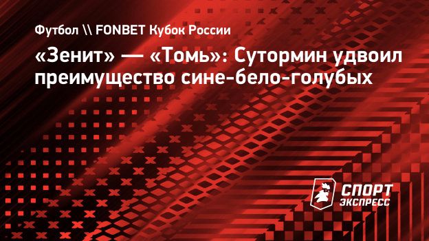 Форвард «Зенита» Алексей Сутормин отметился голом в матче 1/8 финала Олимп-Кубка России против «Томи». Он забил на 56-й минуте. Счет матча — 2:0 в пользу «Зенита».