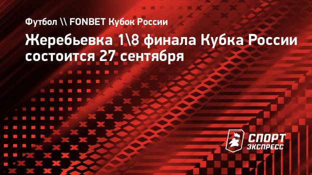 Жеребьевка 1/8 финала Кубка России состоится 27 сентября