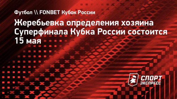 Российский футбольный союз (РФС) 15 мая проведет жеребьевку, по итогам которой определится клуб-хозяин Суперфинала FONBET Кубка России, сообщила пресс-служба турнира.