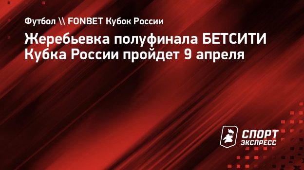 Жеребьевка полуфинала БЕТСИТИ Кубка России состоится 9 апреля, сообщает официальный Telegram-канал Российского футбольного союза (РФС).