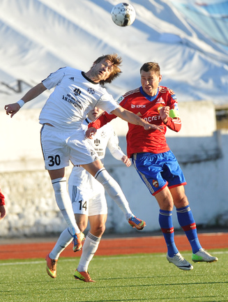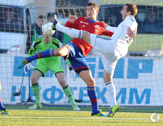 Футбол. Кубок России. 1/16 финала. "Химик" (Дзержинск) – ЦСКА – 1:2 (0:2). Голы: Базелюк, 20 (0:1). Кичин – в свои ворота, 29 (0:2). Еркин, 51 – с пенальти (1:2). В следующем раунде армейцы встретятся с победителем пары "Сокол" – "Крылья Советов". Фото - Александр Федоров, "СЭ"