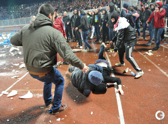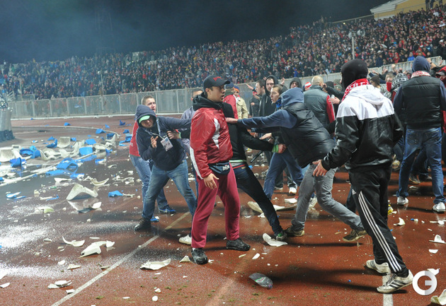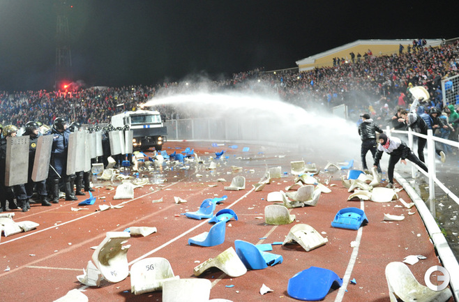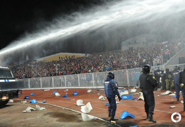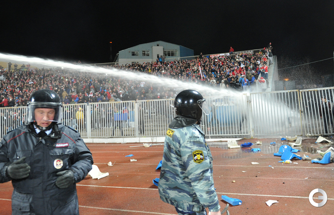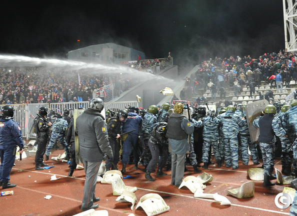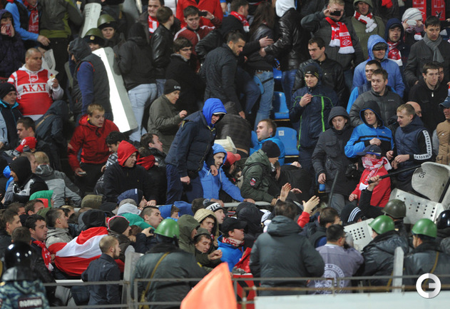 Ярославль. Кубок России. 1/16 финала. "Шинник" – "Спартак" – 0:1. Главным событием матча стали массовые беспорядки, которые произошли в начале второго тайма на трибунах. Фото - Татьяна Дорогутина, "СЭ"