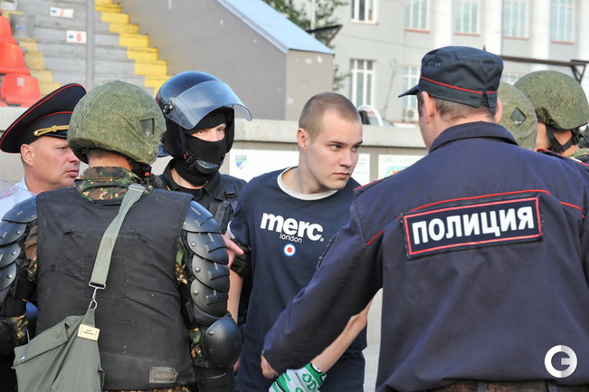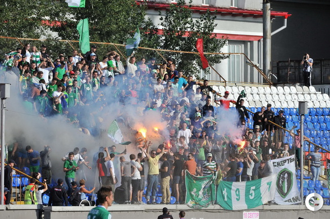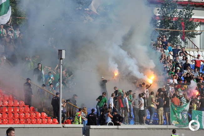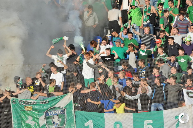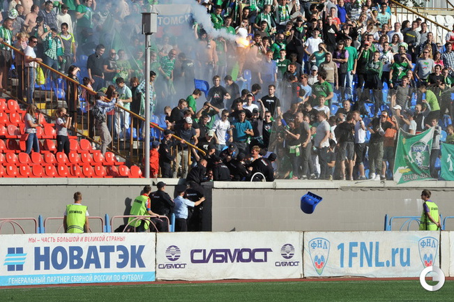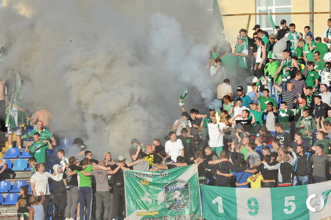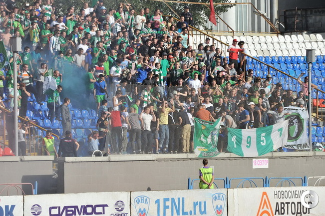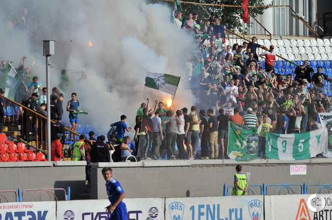 Футбол. Кубок России. 1/32 финала. Новосибирск. "Сибирь" - "Томь"- 3:2 (2:2). Голы: Маркосов, 5 - 1:0. Маркосов (с пенальти), 8 - 2:0. Баженов, 32 - 2:1. Голышев, 35 - 2:2. Астафьев, 84 - 3:2. Матч был отмечен хулиганским поведением фанатов "Томи", которые ломали кресла и пускали петарды на трибунах стадиона. Фото - Алексей Вьюгин