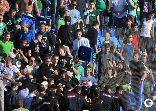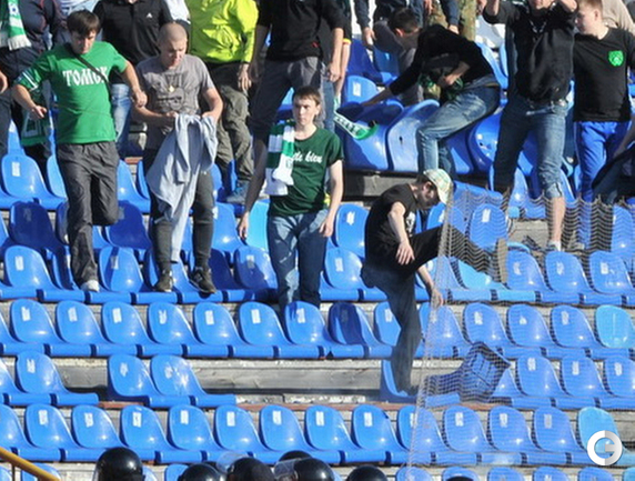 Креслопад в Новосибирске: фанаты громят стадион в сибирском дерби