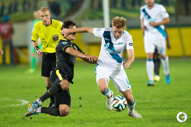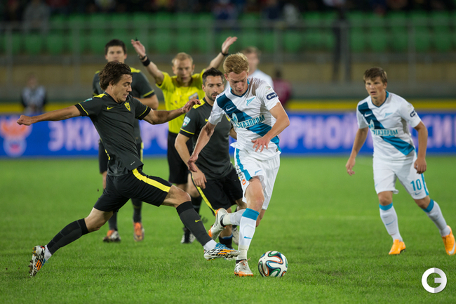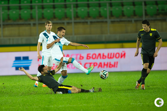 24.09.2014. "Зенит" на чужом поле в матче 1/16 финала Кубка России обыграл "Анжи" со счетом 2:1. Победный мяч на 70-й минуте встречи пяткой забил Саломон Рондон. Фото - Вячеслав Евдокимов, ФК "Зенит"