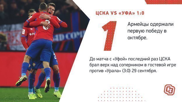 Главные цифры первой октябрьской победы армейцев — над «Уфой» (1:0) в Кубке России.