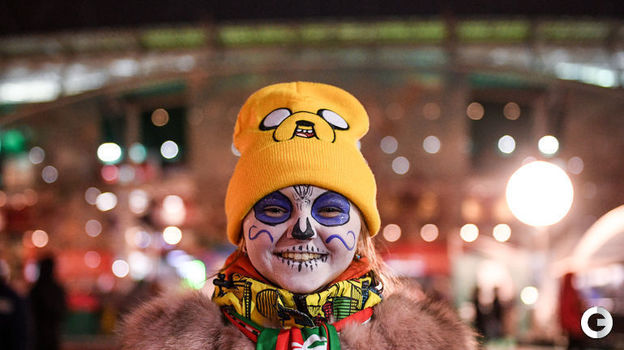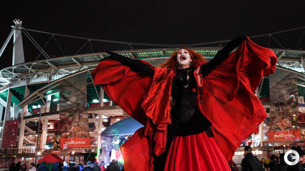 Болельщики празднуют Хэллоуин перед матчем "Локомотив" – "Енисей". "Локомотив" предложил болельщикам облачиться в костюмы по случаю Хэллоуина. Те фанаты железнодорожников, которые пришли на матч 1/8 финала Олимп-Кубка России против "Енисея" в костюмах, получат 50-процентную скидку на покупку двух билетов на игру против "Галатасарая" в рамках группового этапа Лиги чемпионов.