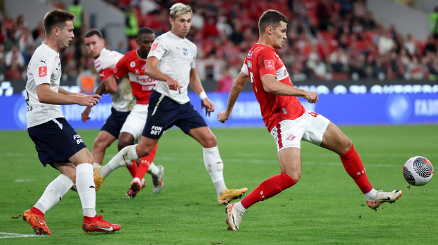 «Спартак» разгромил «Крылья Советов» в домашнем матче FONBET Кубка России — 4:1, отправив в ворота гостей три мяча до перерыва. Счет уже на второй минуте открыл Шамар Николсон: ямайский нападающий отличился в составе москвичей впервые за 697 дней.