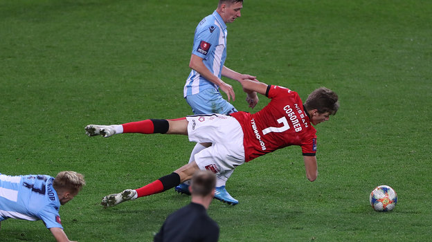 «Спартак» одержал разгромную победу над «Родиной» на старте группового турнира Бетсити Кубка России — 5:1. Счет в первом тайме открыл Александр Соболев.
