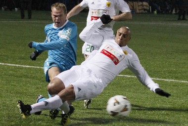 Но на 12-й минуте ни именитый ветеран, ни кто-либо другой был уже не в силах помешать номинальным гостям открыть счет. При розыгрыше штрафного толкнули Лазовича - Каюмов назначил пенальти, который четко исполнил Хусти. Почти сразу у "Анжи" произошла первая замена: вместо получившего повреждение Жоау Карлоса на поле под рев трибун вышел Лахиялов, недавно выступавший в "Тереке". Другой же Карлос - Роберто явно не успевал за более быстрыми Анюковым и Быстровым, которые периодически вскрывали правый фланг "Анжи" и угрожали воротам. И все же махачкалинцы сравняли счет. После мощного удара со средней дистанции Жевнов парировал мяч, но первым на добивании оказался Агаларов.