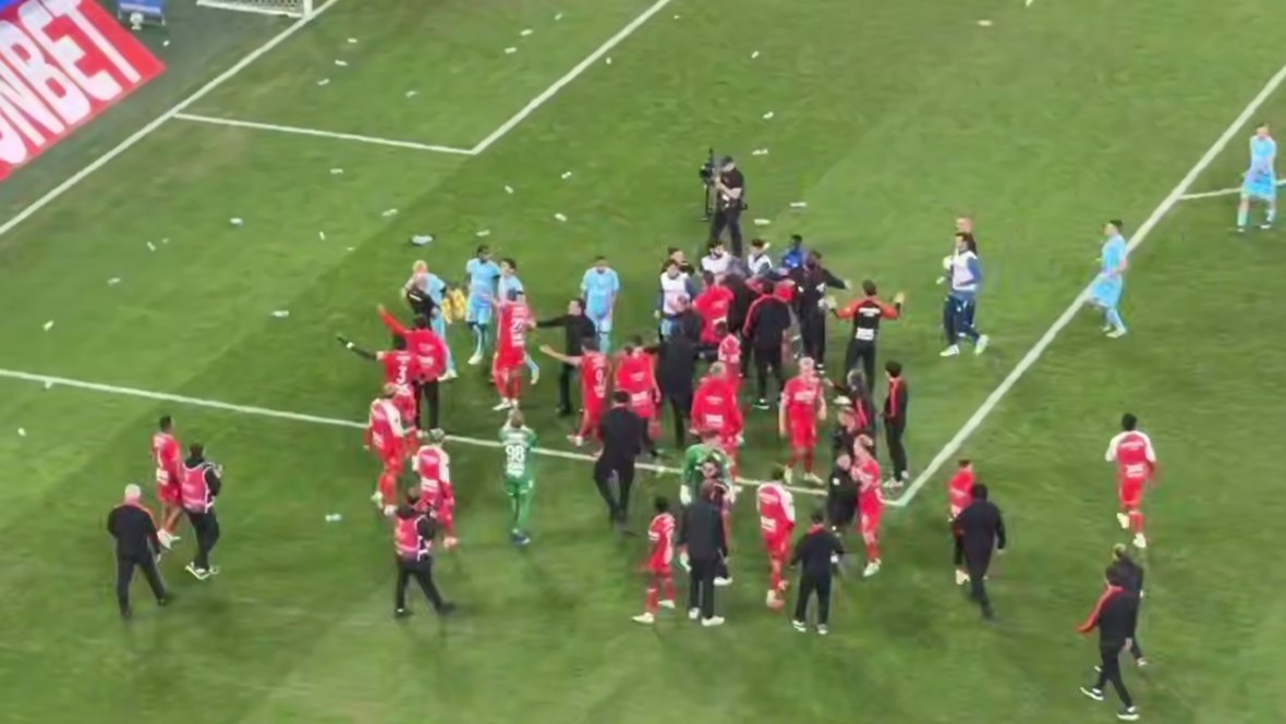 Не менее горячей получилась концовка встречи. Уже после свистка в футболистов «Спартака» полетели бутылки.