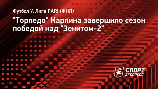 В матче 38-го тура первенства ФНЛ "Торпедо" взяло верх над "Зенитом-2" - 2:0. Подопечные Валерия Карпина ранее оформили вылет в ПФЛ, "Зенит-2" завершил сезон на 13-м месте, упустив возможность подняться на девятое.