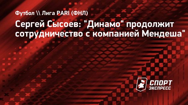 Сергей Сысоев: "Динамо" продолжит сотрудничество с компанией Мендеша"