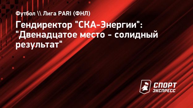 Гендиректор "СКА-Энергии": "Двенадцатое место - солидный результат"