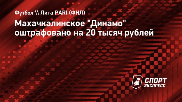 Махачкалинское "Динамо" оштрафовано на 20 тысяч рублей