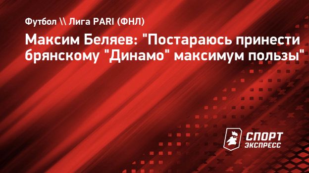Максим Беляев: "Постараюсь принести брянскому "Динамо" максимум пользы"