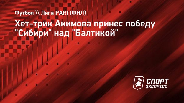 Хет-трик Акимова принес победу "Сибири" над "Балтикой"