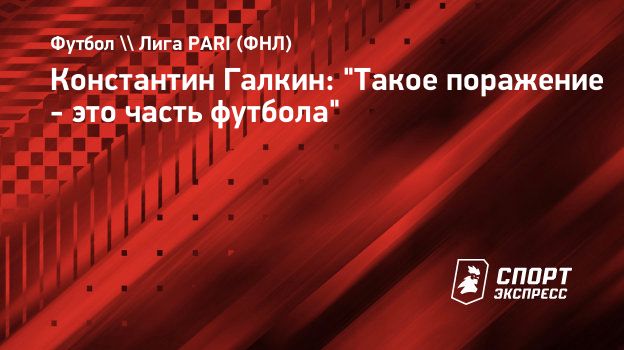 Константин Галкин: "Такое поражение - это часть футбола"