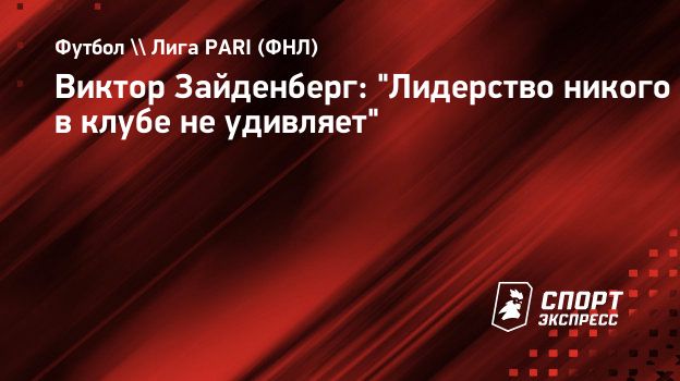 Виктор Зайденберг: "Лидерство никого в клубе не удивляет"