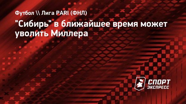 По информации OneDivision.ru, главный тренер "Сибири" Алекс Миллер будет уволен с занимаемой должности уже в ближайшие два-три дня. Попадание "Сибири" в первую четверку, продолжающую борьбу за выход в премьер-лигу, оказалось под большим вопросом после поражения новосибирцев от "Урала", и в планы руководства новосибирского клуба не входит дальнейшая оплата дорогостоящего контракта шотландского специалиста.