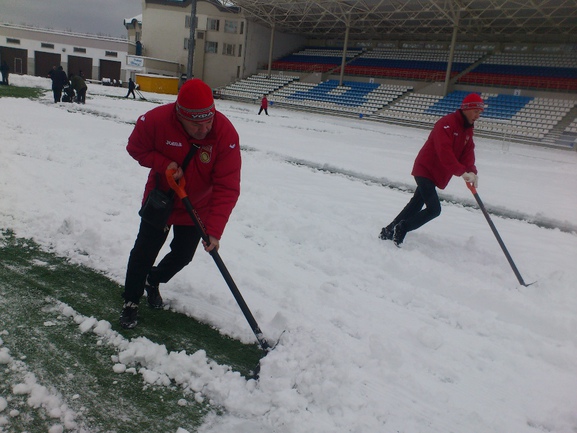 - Покидать снежок в хорошем коллективе – почему бы и нет! К сожалению, не всегда выдерживают нагрузок импортные пластиковые лопаты, если бы ни это обстоятельство, я бы запросто кубов 20 снега перекидал! По делам в Москву улетел наш главный тренер Игорь Колыванов, а то бы и он нам обязательно помог! (Сергей ТЫРТЫШНЫЙ)