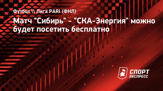 Билеты на матч 30-го тура первенства ФНЛ между "Сибирью" и хабаровским "СКА-Энергией" будут бесплатными, сообщает официальный сайт новосибирского клуба. Встреча состоится на стадионе "Спартак" 30 апреля, начало – в 19.00. Бесплатный билет на игру необходимо получить в кассах арены. Владельцам абонементов брать билет на поединок не нужно.