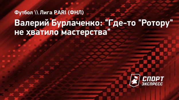 Валерий Бурлаченко: "Где-то "Ротору" не хватило мастерства"