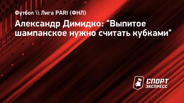Александр Димидко: "Выпитое шампанское нужно считать кубками"