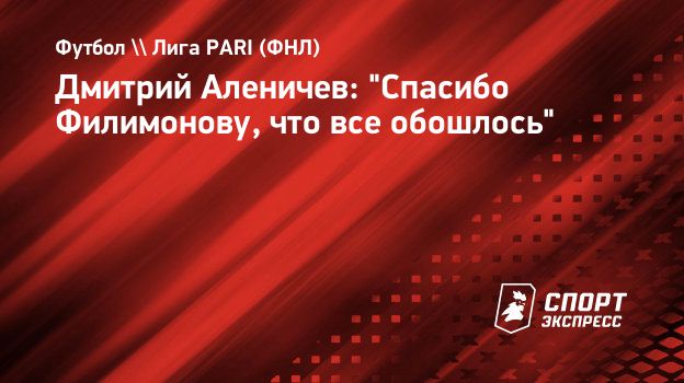 Дмитрий Аленичев: "Спасибо Филимонову, что все обошлось"