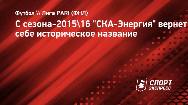 С сезона-2015/16 "СКА-Энергия" вернет себе историческое название