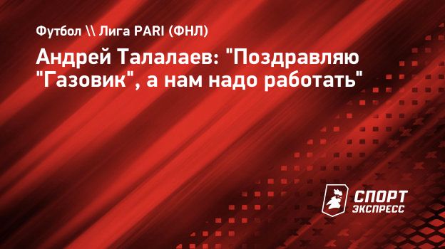 Андрей Талалаев: "Поздравляю "Газовик", а нам надо работать"