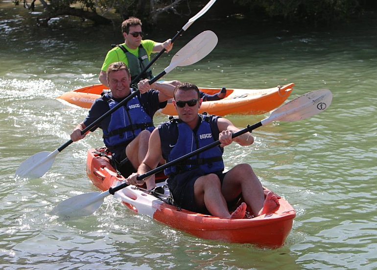 Игроки "Крыльев Советов" провели необычную тренировку, устроив заезд на речных каяках по Персидскому заливу, сообщает официальный твиттер клуба из Самары. Часть игроков сели в двухместные лодки, а некоторые – в одноместные. Тем не менее практически все самарцы плавали на каяках впервые. Занятие длилось порядка часа и было направлено на выносливость. Первым среди "двоек" к финишу пришел каяк Дениса Вавилина и Алана Чочиева. А в зачете "одиночек" победу одержал Ибрагим Цаллагов.