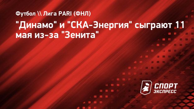 "Динамо" и "СКА-Энергия" сыграют 11 мая из-за "Зенита"
