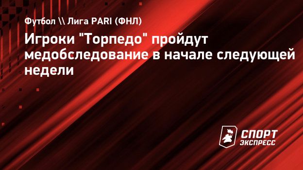 Игроки "Торпедо" пройдут медобследование в начале следующей недели