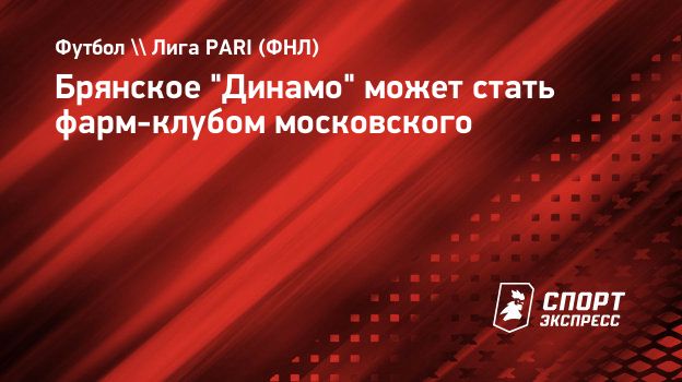 Брянское "Динамо" может стать фарм-клубом одноименного московского клуба, сообщил корреспонденту "СЭ" Юрию ГОЛЫШАКУ председатель совета учредителей брянской команды Евгений Синяев. |