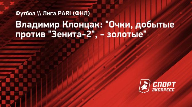 Владимир Клонцак: "Очки, добытые против "Зенита-2", - золотые"