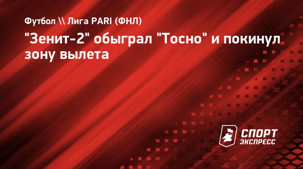 В матче 21-го тура ФНЛ "Зенит-2" в Санкт-Петербурге обыграл "Тосно" – 2:1. Результат позволил подопечным Владислава Радимова подняться на 14-е место и покинуть зону вылета. В другом матче тура "Балтика" и "Енисей" сыграли вничью со счетом 0:0.