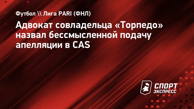 Адвокат совладельца «Торпедо» назвал бессмысленной подачу апелляции в CAS