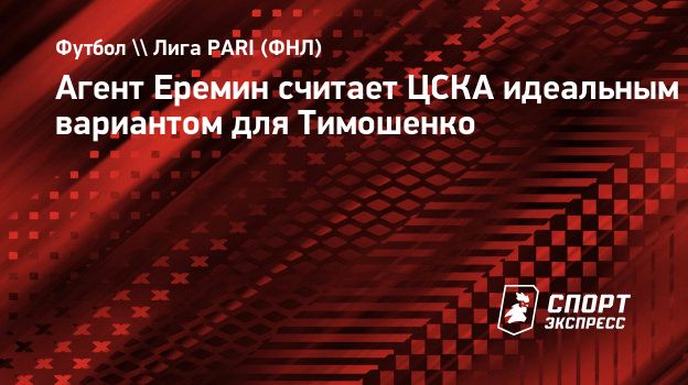 Агент Еремин: «ЦСКА для Тимошенко — идеальный вариант»
