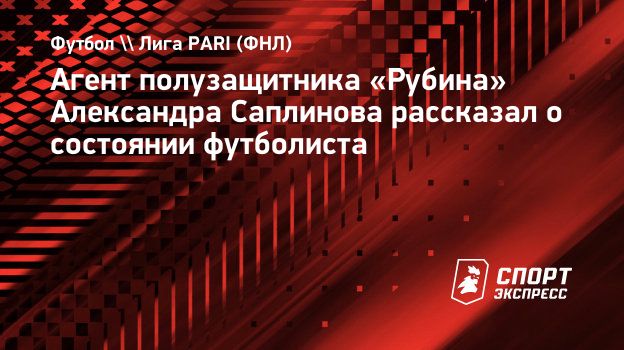 Агент Андрей Талаев, представляющий интересы полузащитника «Рубина» Александра Саплинова, рассказал «СЭ» о состоянии футболиста.