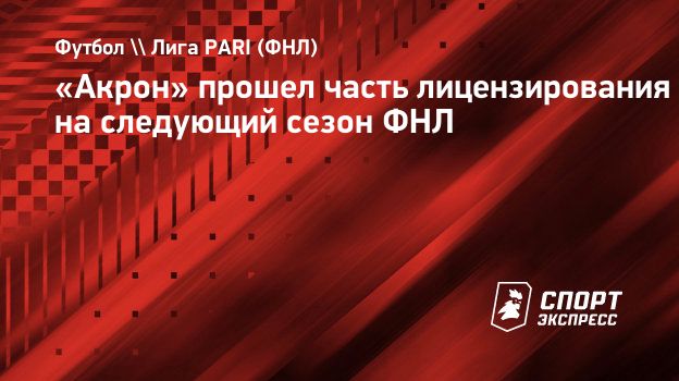 По его итогам было принято решение признать соответствие «Акрона» критериям лиги и рекомендовать РФС рассмотреть вопрос о выдаче лицензии РФС 2, которая дает право сыграть в чемпионате ФНЛ в следующем сезоне.